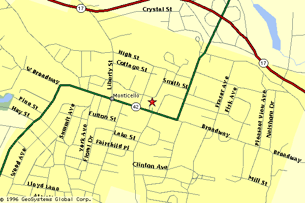 Downtown Village of Monticello, directly across the street from the Sullivan County Court House, sits an early 20th century, three-story red-brick building with a large Masonic emblem on the face.